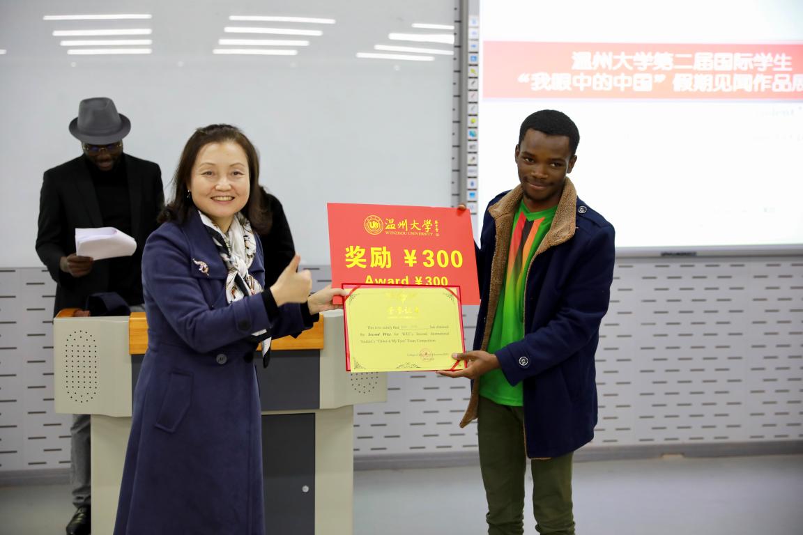 经过前期筛选,共有10件作品入围此次决赛角逐一、二、三等奖。展示会现场,国际学生一一上台,通过视频、图片、文字等方式展示假期见闻及他们眼中的中国,内容涉及中国的饮食、服饰、传统节日、风俗、语言文字、人文经济、新兴科技等方面。来自赞比亚的生物技术专业学生BANDA JOSHUA说,“能够跟随不同国家的学生看看他们眼中的中国,我觉得很有趣。在我看来,中国是一个值得其他国家尤其是发展中国家学习的‘老师’。中国不光在科学技术方面有所发展,在文化、自然环境方面的功课也没有落下。所以对我来说,中国在我的眼里是一个特别令人向往的地方。”计算机科学与技术专业的埃塞俄比亚籍学生TASSEW TEWODROS MEGABIAW提到,“这次作品展示会不仅给我们提供展示自我的机会,也让我们通过这种方式学到更多关于中国的知识,还能提高写作技巧和水平。在我看来,中国是一个美丽的国家,历史悠久。中国重视传统文化的传承和弘扬。今年寒假我回到埃塞俄比亚要继续社会实践工作,把我在中国学到的知识传播给更多的人。”