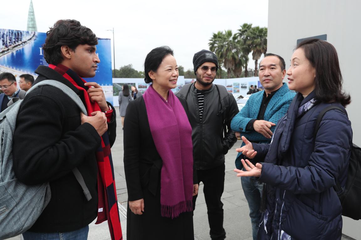 来自“一带一路”国家的国际学生来到温州大剧院广场,跟随温州市委宣传部胡剑谨部长的脚步,一边听取讲解员的介绍,还不时停下来询问,胡部长亲切地给予他们解答说明。通过图片,国际学生们能够更直观地了解改革开放40年来温州城乡面貌发生的巨大变化、百姓生活发生的历史性变革和取得的历史性成就,特别是看到他们自己所熟悉的地方和建筑的前世今生后,不时发出阵阵惊叹。参观结束后,国际学生讲述了他们参观后的感受。