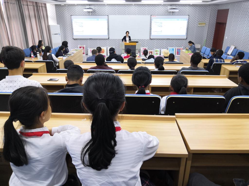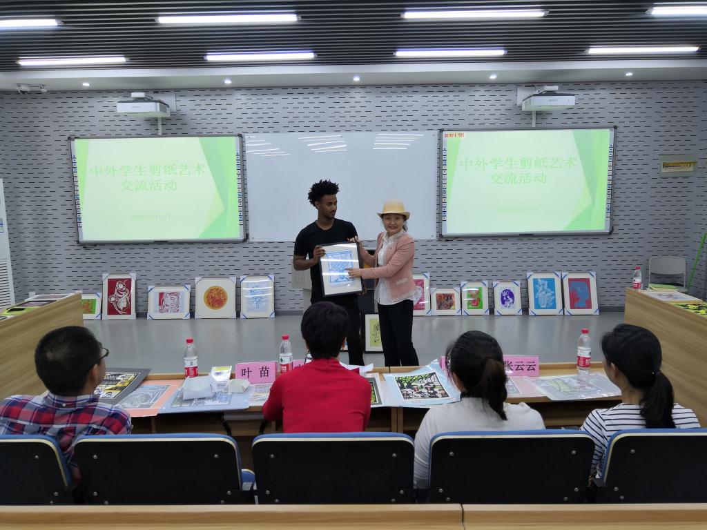 为进一步加强中外学生对中国传统文化的理解,促进不同国家语言、文化艺术的交流,5月15日下午,国际学院(留管部)在北校3号国际楼201会议室举办了国际学院(留管部)、龙湾区职业技术学校、龙湾区永兴一小三校学生剪纸艺术交流活动。国际学院(留管部)院长兼党总支书记叶苗,党总支副书记陈文远,瓯海区非遗剪纸项目代表性传承人、温州市文艺家协会会员张丽丽,龙湾区永兴一小副校长张云云、龙湾区职业技术学校领队曾丽萍、60余名中外学生参加了活动。