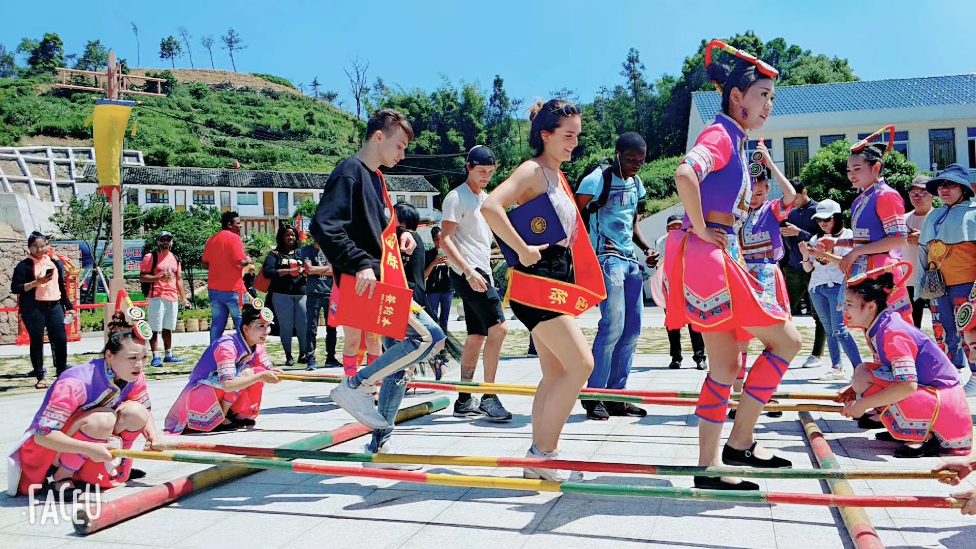 茶文化教学实践活动分为上午和下午两部分。上午,学生首先观看了新联村畲族热情洋溢的竹竿舞表演,之后学生在茶学博士—董占波的带领下有序游茶山,采摘茶叶,进行炒茶体验,了解茶文化。下午,全体语言生参观了子久茶博苑,观看了茶艺表演,学习泡黄汤品黄汤,学生积极参与,热情极高,对中国的茶文化有了深入的了解。随后,全体语言生在温州诗词楹联学会书法专家的指导下,学习书法,并获得了专家的书法作品馈赠。
