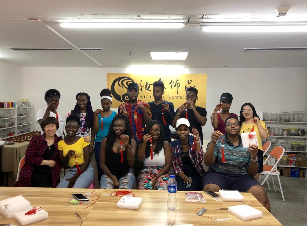 2019年5月23日下午,温州大学“走进温州”课堂的22位留学生们在老师的带领下来到大学生创业园的汝意饰品工作室,亲自制作了传统中国结。