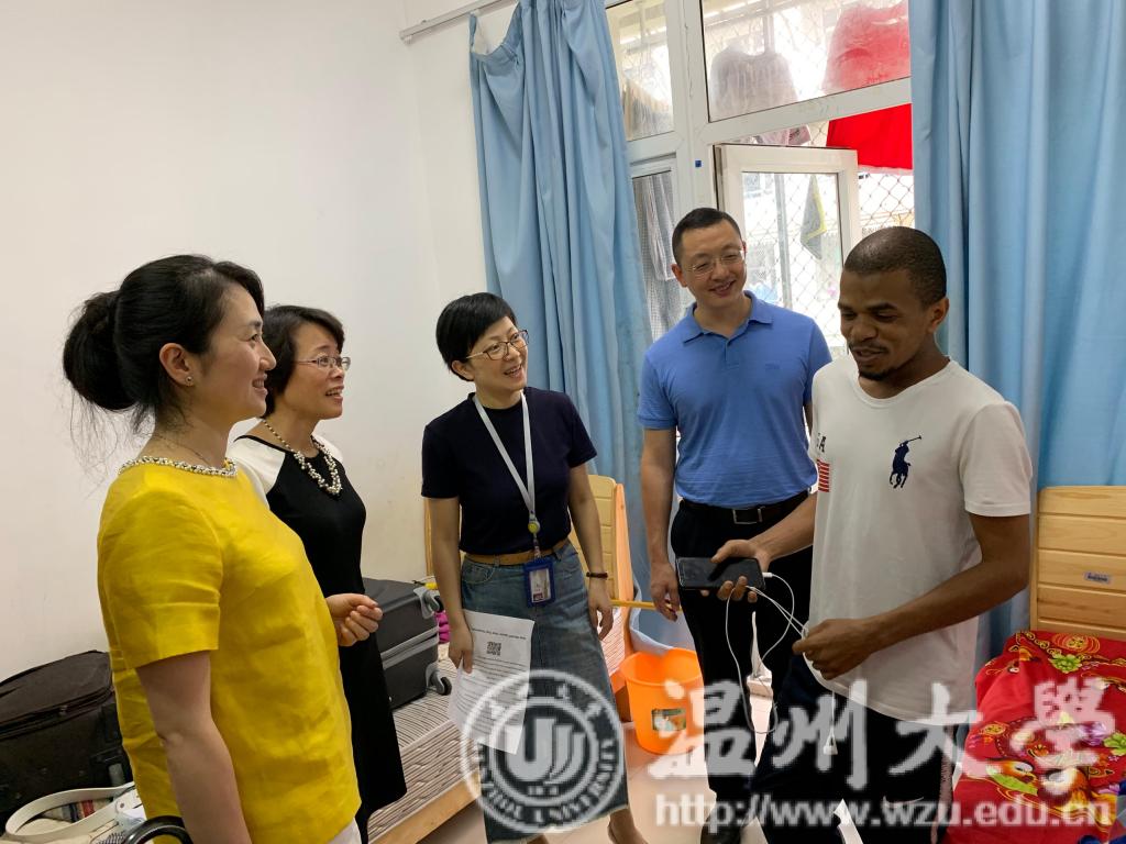 开展学生寝室走访暨教工党日活动,党总支书记林爱菊、党总支副书记张雪萍、副院长熊勇、副院长吴之欧与学生科辅导员前往国际学生公寓D区进行寝室走访慰问。
