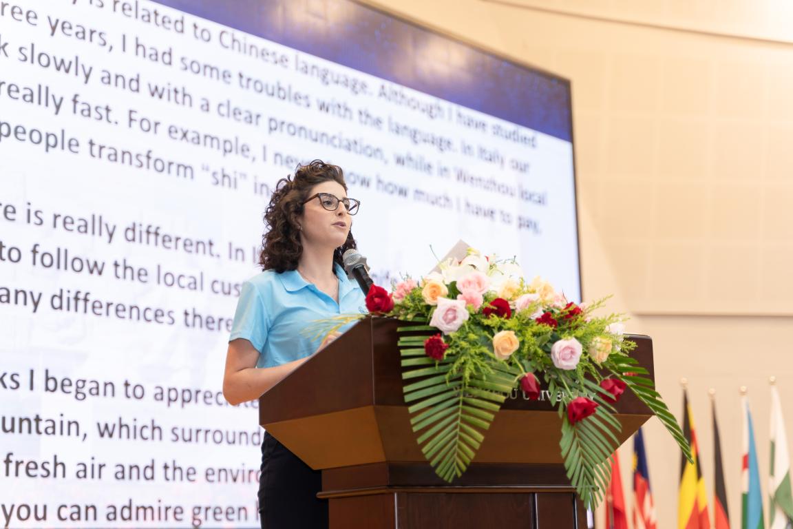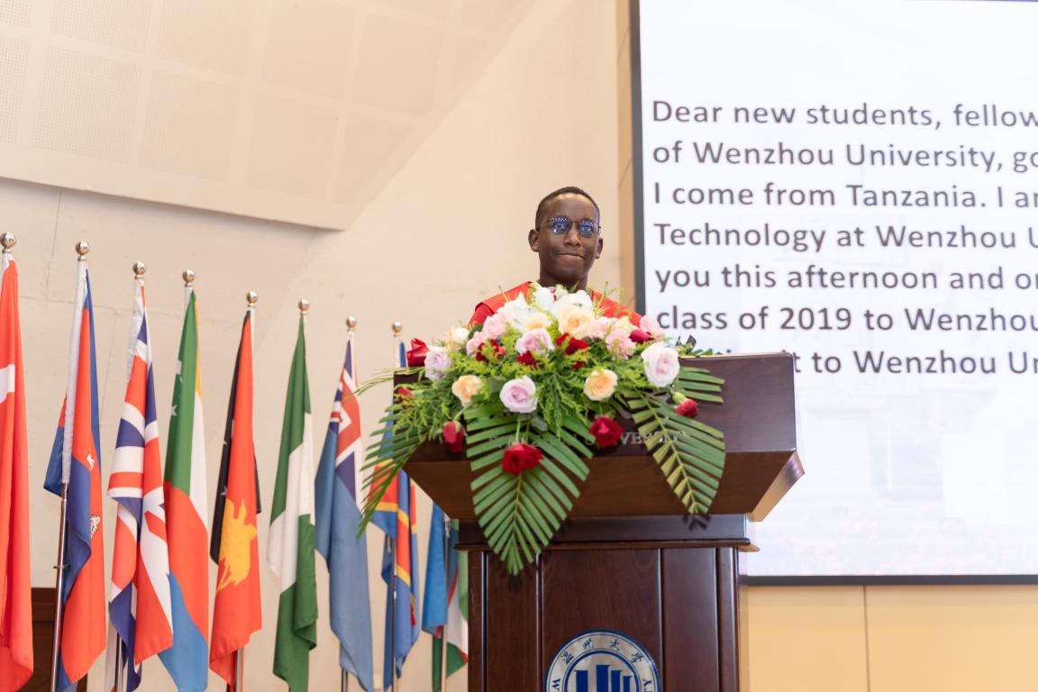 开学典礼上新老国际学生代表发言引起阵阵掌声。来自坦桑尼亚的2018级计算机科学与技术专业学生陆求是同学说,自己刚来温大的时候还不太适应,慢慢地身边的老师和同学给了他很大帮助,让他逐渐学习汉语,也学会了很多新的生活技能。陆求是还是今年一等校长奖学金的获得者,他说道:“温州大学为我们提供了丰富的教育资源和图书资料,希望大家好好学习,多多思考,尊敬师长,以优异的成绩回报父母和学校。”来自意大利的TARANTINO MARIA两年前曾作为交换生来到我校学习,今年她重新作为汉语进修生回到这里攻读汉语,现在已经可以用流利的中文进行发言。她说,随着对中国文化的了解和对温大的熟悉,她越来越喜欢大学城的风景宜人和大罗山的秀美,这里还有新鲜的空气和安静的学习环境,老师们热情的帮助和专业的学识、校园活动的丰富多彩和活泼有趣都是她决定再次回来学习的原因。