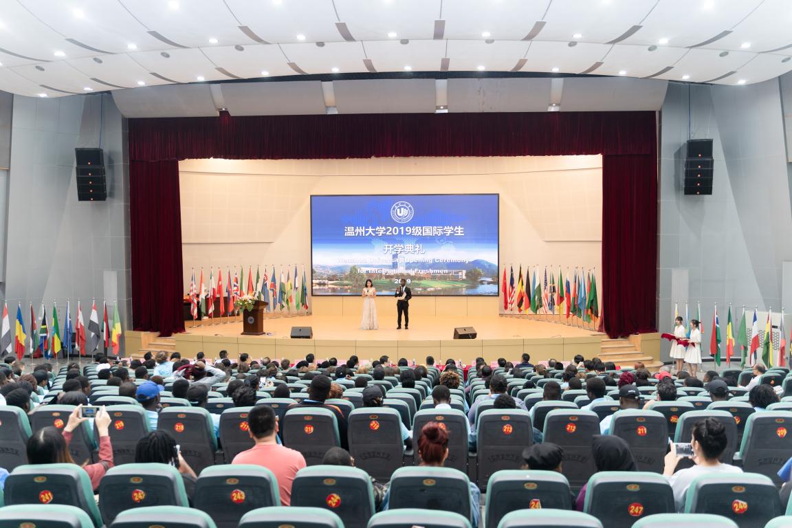 10月23日下午,我校2019级国际新生开学典礼暨第四届国际文化周开幕式在南校区9号楼报告厅顺利举行。来自俄罗斯联邦、坦桑尼亚、意大利的207名本科生、硕士生、汉语言生和交换生将在这里开启他们的留学生涯。温州市人民政府外事办公室副主任周怀中、温州市教育局对外合作与交流处副处长陈炜、温州大学副校长钱强、学校相关部门和学院负责人、师生代表和国际学生奖学金获得者参加此次典礼。