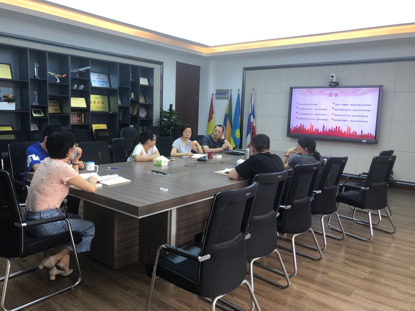 林爱菊书记首先介绍了今年全国两会召开的基本情况,并对《政府工作报告》的八个部分做了介绍与解读。林书记强调要确保“两会”精神落地生根,工作全面进入常态,防范和化解“疫后综合症”,各项工作做到提质增效。特别是要做好毕业生毕业与首届航管专业学生的就业服务帮扶工作,