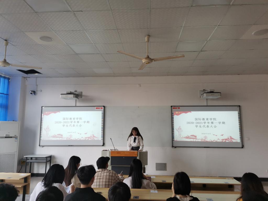 2020-2021学年学生代表大会在北校区3号楼202教室召开。国际学生分会成员、航空管理专业学生代表及学生会指导老师程玲参加此次会议。