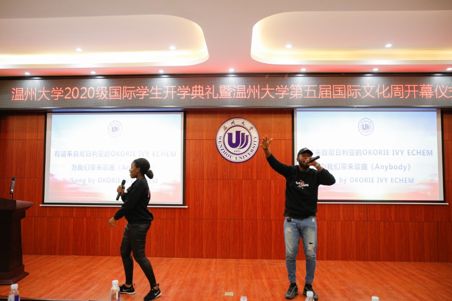来自尼日利亚的学生OKORIE IVY ECHEM和EJUKWU IKECHUKWU以一支洋溢着青春活力、国际化味道浓厚的歌舞将在场师生带到国际文化周的氛围中,意味着我校第五届国际文化周正式开幕。此次国际文化周还将开展一系列中外文化体验、体育运动、竞赛等活动,如国际美食节、国际学生汉语技能大赛、“美丽浙江”外国留学生短视频大赛等。