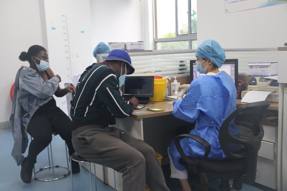 来自津巴布韦的国际学生DUBE KELVIN ERROL TINASHE用流利的中文说:“中国医生医术一流,对我们外国人非常友好,本以为打针很疼,但打完后没有不适感。我现在更有信心了,很感谢学校对我的关心。”