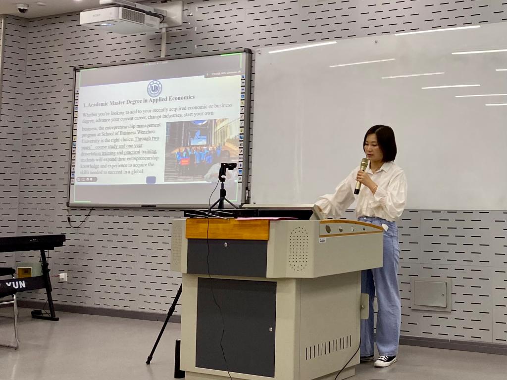 5月12日下午,由我校留管部主办的温州大学留学生硕士项目招生说明会在北校区3-201教室举行,并通过腾讯会议同步直播。会议面向所有有意申报我校硕士项目的国际学生,参会人员线上线下合计约四十余人。