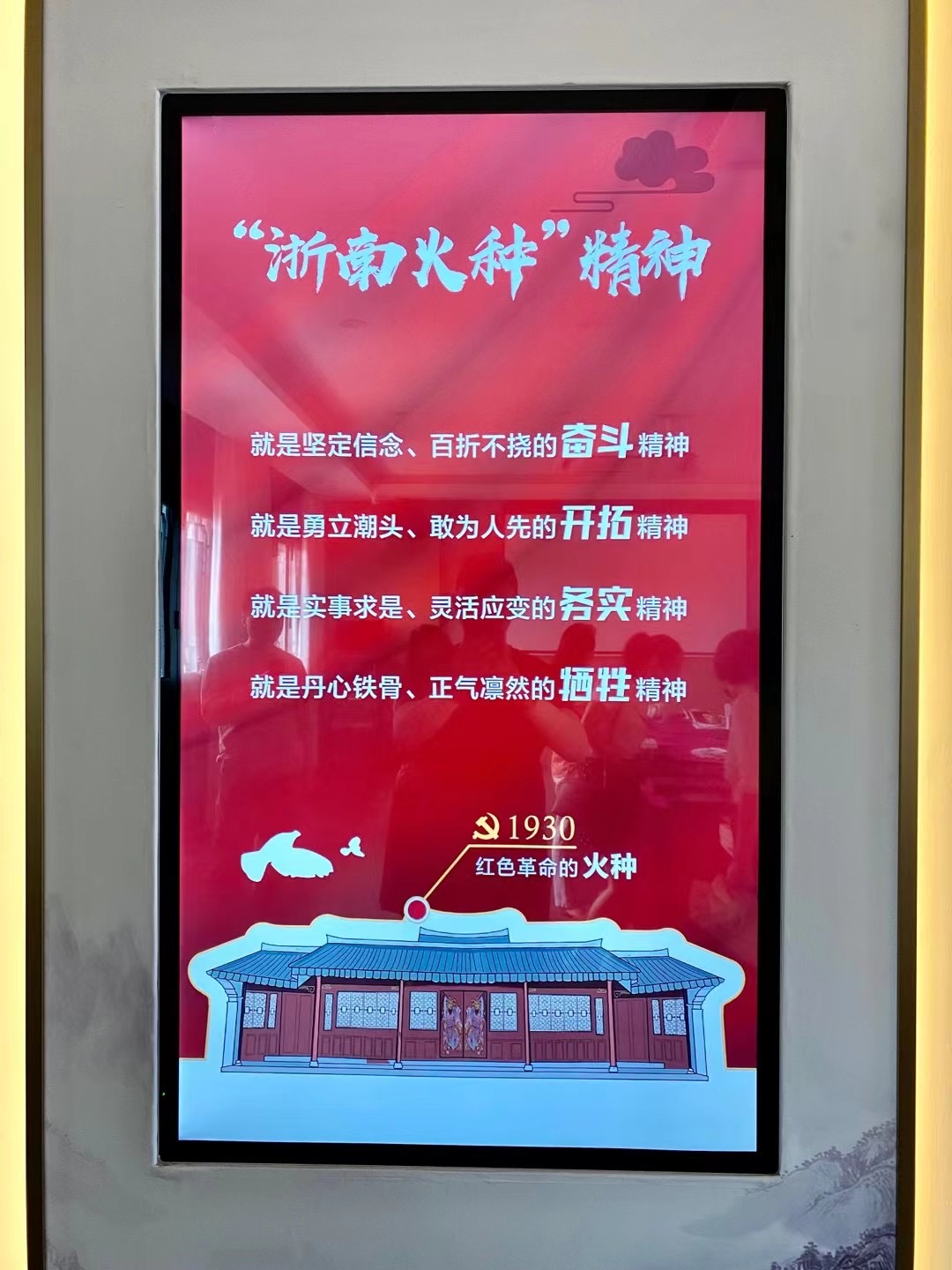 党员们走进了庄严肃穆的中共浙南第一次代表大会纪念馆,纪念馆大门两侧分别写道:义举红旗传马列,功垂青史壮山河。大家认真听取了讲解员关于浙南一大召开的基本情况及相关烈士的简介,并仔细参观了革命家留下的手稿、器具等实物。一幅幅图片、一件件展品、一段段历史,让大家深切地感受到了坚定信念、百折不挠的奋斗精神;勇立潮头、敢为人先的开拓精神;实事求是、灵活应变的务实精神;丹心铁骨、正气凌然的牺牲精神,而这些伟大精神,融合成为了“浙南火种”精神。