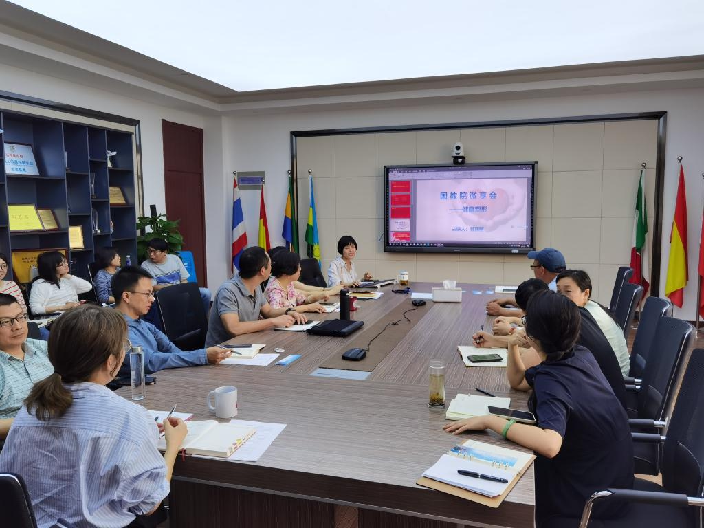 全体教师在311开展第6期“国教微享会”活动,分享的主题为“健康塑形”,招生科科长管丽丽主讲。