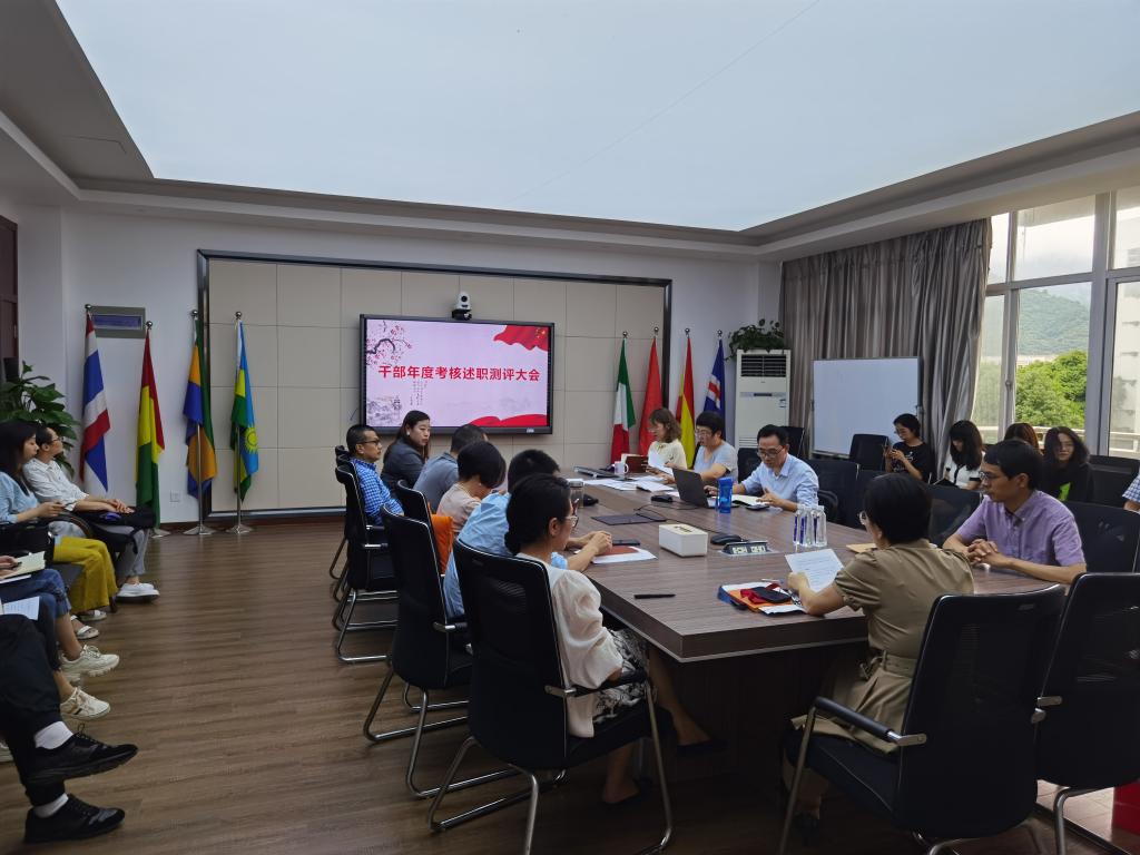 全体教职工在国际楼311会议室召开会议,组织部麻法全科长参加了会议,林爱菊书记主持。
