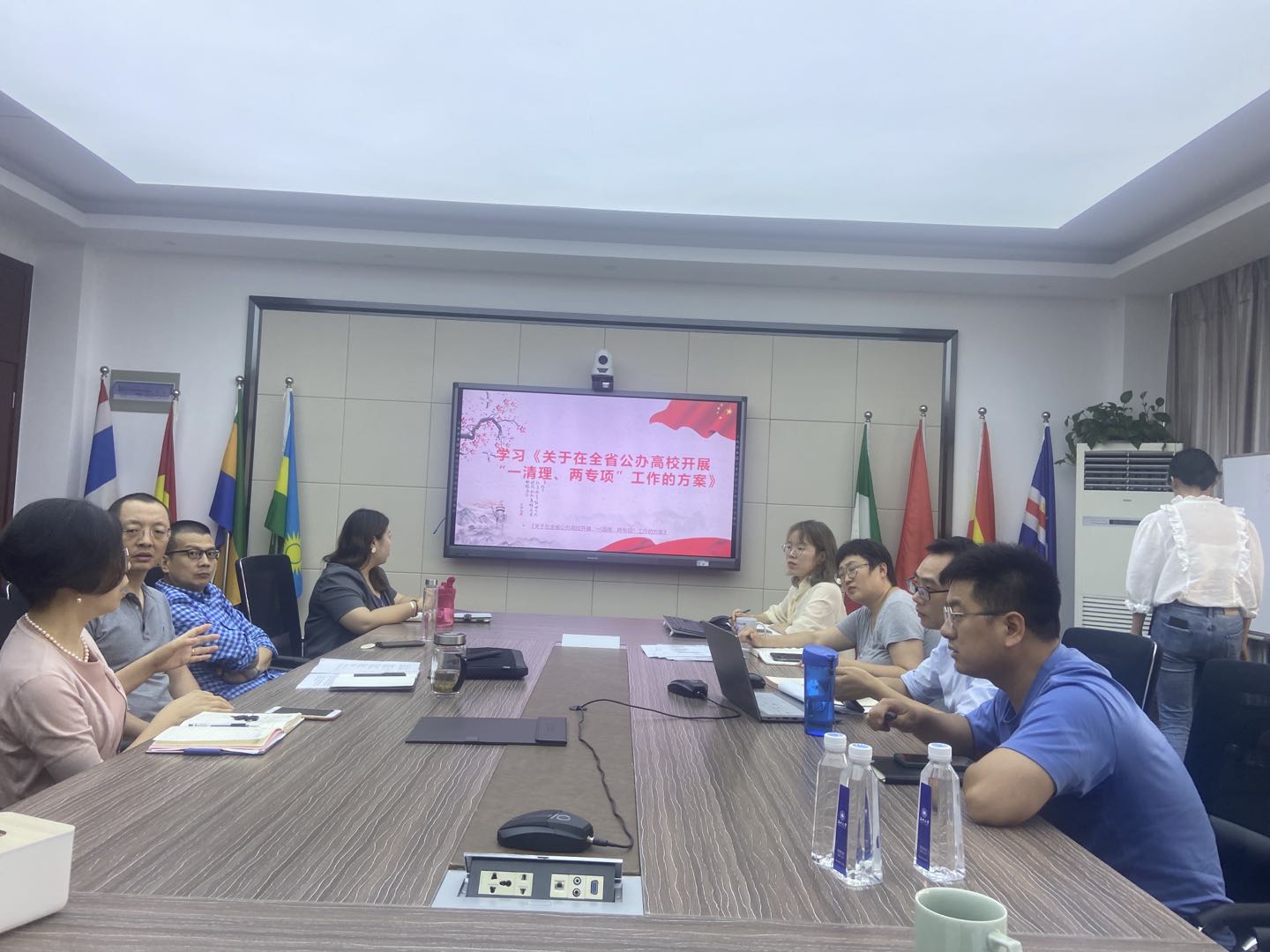 接着,与会教师认真学习了省纪委、省教育厅联合发布的《关于在全省公办高校开展“一清理、两专项”工作的方案》的文件精神。