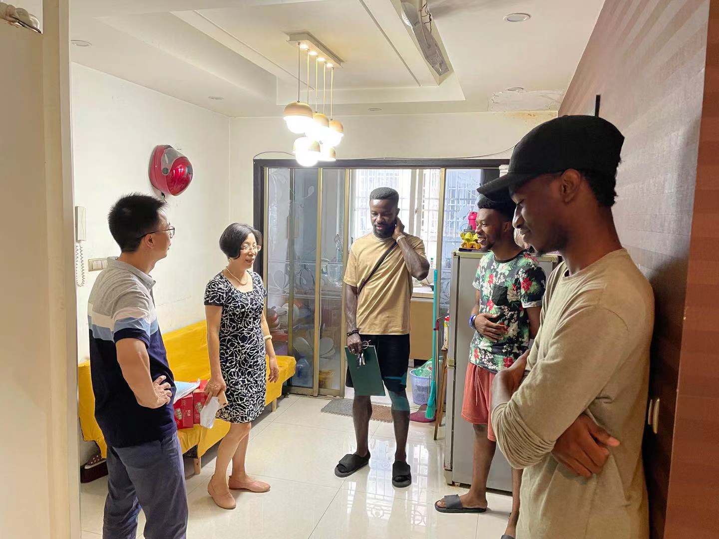 院长叶苗和书记林爱菊分两组带队赴校外住宿走访。每到一户校外学生住宿地,叶苗院长和林爱菊书记都细细叮嘱留学生要加强安全防范意识,注意防火、防盗;继续做好新冠肺炎疫情常态化防护;详细询问留学生的学习情况、学业进展情况、生活情况等。要求他们在居住地不聚众喧哗、不干扰邻居;不经商或从事其他经营性活动;不进行传教活动等。鼓励留学生提升个人学习能力,学好中文,了解中国文化,做中外友好交流的使者,为促进各国人民民心相通发挥积极作用。要学会自我管理,如有困难一定要及时联系学院,学院会尽全力保障校外学生的学习生活。
