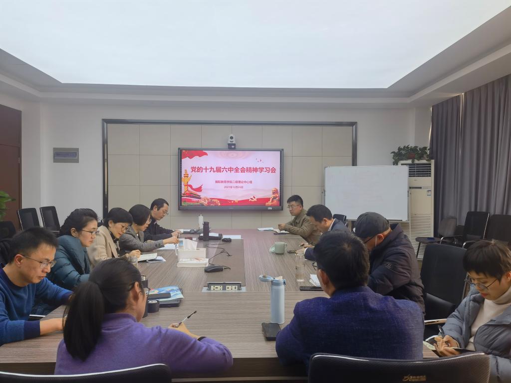 二级理论学习中心组在国际楼311会议室举行“党的十九届六中全会精神”专题学习交流会,党委委员、副校长王舜,学院班子成员,党总支委员,汉硕点负责人,教研室主任,党务秘书,科长参加了会议,党总支书记林爱菊主持。